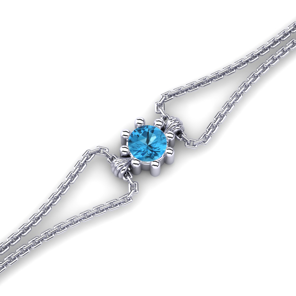 At the heart of the design lies a captivating GL certified Swiss Blue Topaz, weighing 0.16 carats and measuring 3.5 mm in diameter. The round gemstone is held securely in place by a delicate setting, showcasing its AAA clarity and very good cut to perfection. The stone's vibrant Swiss Blue hue adds a pop of color and a touch of elegance to the overall aesthetic of the bracelet. The chain style of the bracelet provides a classic and versatile look that can be worn both as a statement piece or as part of a layered ensemble.