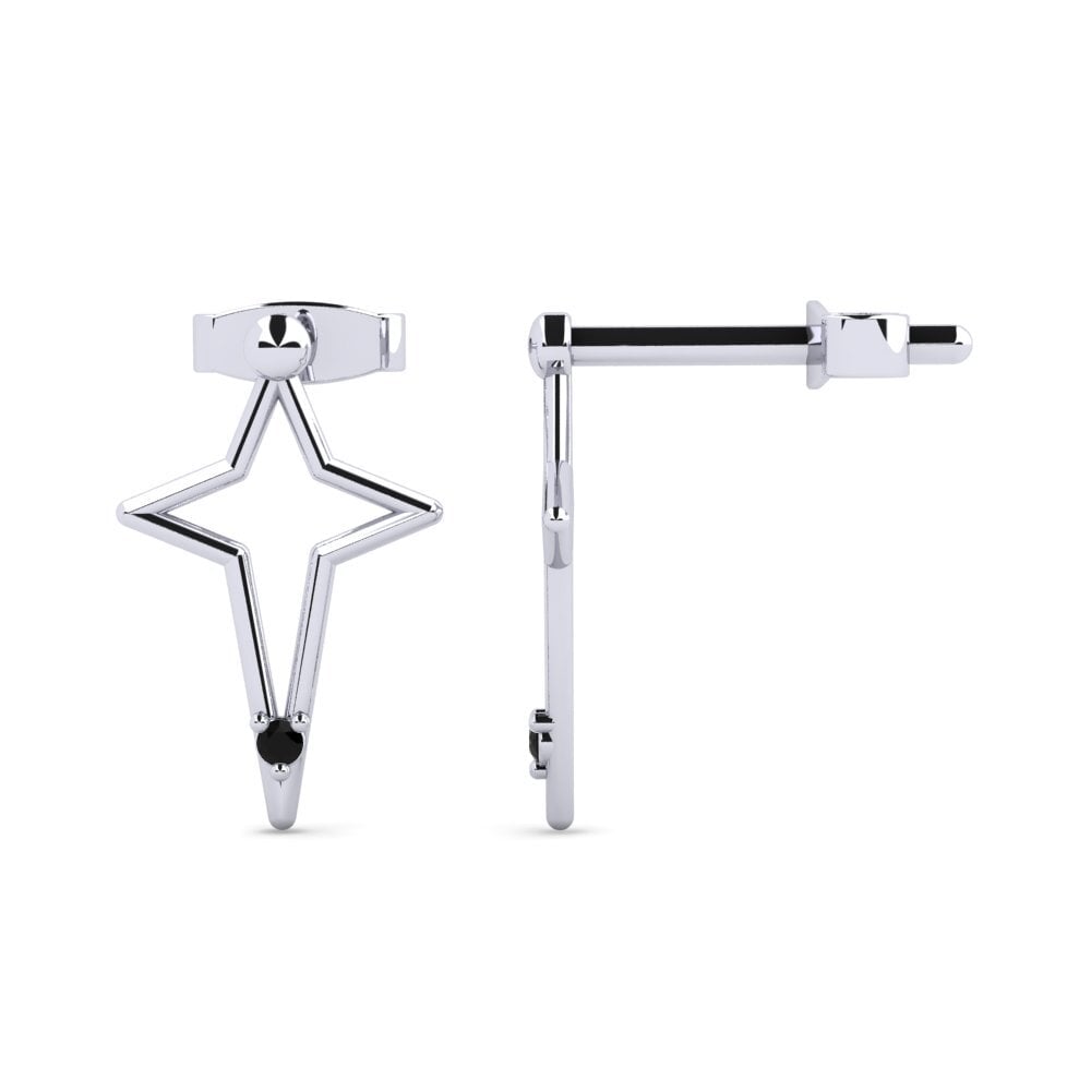 At the heart of each star-shaped design lies a captivating black diamond, meticulously certified by GL and boasting a clarity of AAA. These round-cut gems, each 1.2 mm in diameter, total 0.016 carats, providing a subtle yet striking contrast against the gleaming white gold. The very good cut of the diamonds ensures maximum brilliance, making these earrings a standout accessory that catches the light beautifully.
