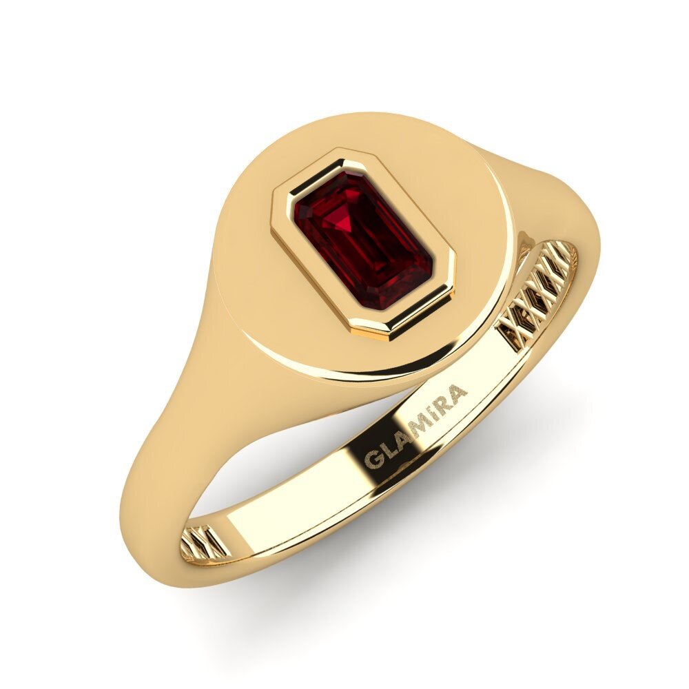 The focal point of the Afdends ring is its stunning emerald-shaped garnet, set majestically at the center. This garnet, weighing 0.4 carats and measuring 5.0x3.0 mm, boasts a AAA clarity and a very good cut, enhancing its deep red hue that symbolizes passion and commitment. The stone's exquisite setting is complemented by the rhodium plating that adds a durable, lustrous finish to the gold.