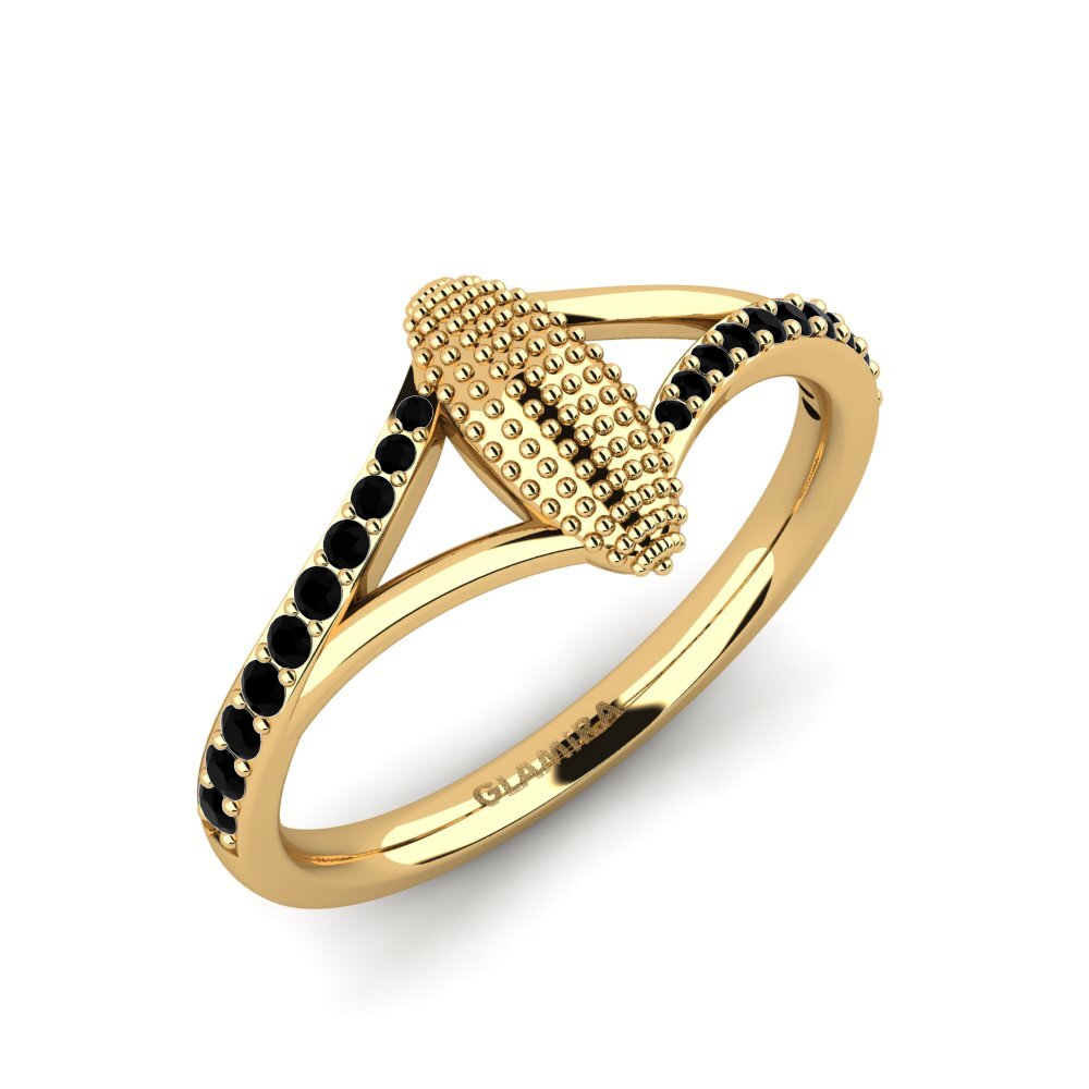 The design of the Denaen ring is a harmonious blend of boldness and elegance. The black onyx stones form a striking contrast against the golden hue, creating an alluring visual rhythm along the band. The central motif, embellished with textured gold beads, adds a tactile dimension to the ring's aesthetic, making it a true statement piece.