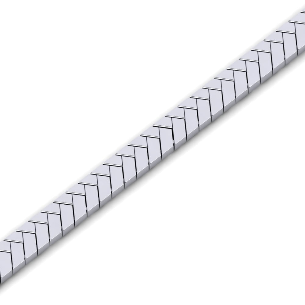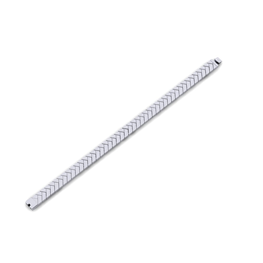 Non-reflective finish with a vertical brush texture. This type of finish reduces the reflectivity of the metal. It provides a chic look when used together with polished finish.